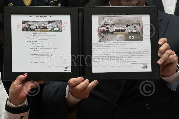 CIUDAD DE MÉXICO, 05AGOSTO2024.- Está mañana se llevó a cabo la cancelación del timbre postal por el programa "Sí al Desarme, Sí a la Paz". FOTO: DANIEL AUGUSTO/ CUARTOSCURO.COM