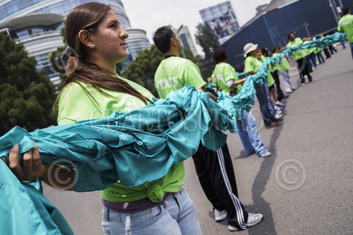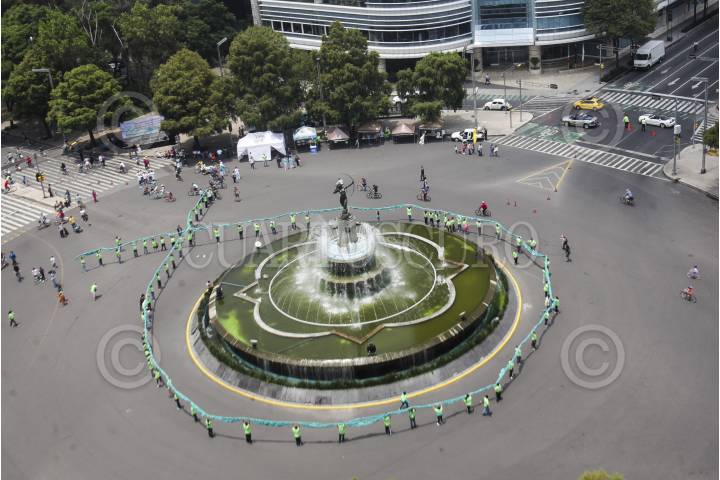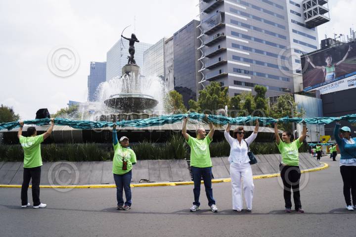 MÉXICO, D.F., 26AGOSTO2012.- La Asociación Mexicana de Lucha contra el Cáncer, el Instituto Nacional de Cancerología y el Grupo de Investigación de Cáncer de Ovario y Tumores de la Mujer organizaron un evento con el fin de alcanzar un nuevo Record Guiness de personas en apoyo al cancer de ovario al integrar listones de aproximadamente 40 cm de largo en una gran cinta que midió 2.3 kilómetros. Ésta fue colocada alrededor del Monumento a la Diana Cazadora. FOTO: /CUARTOSCURO.COM