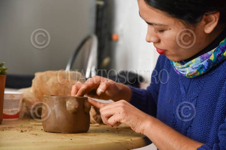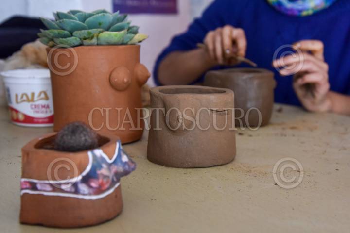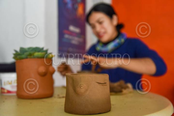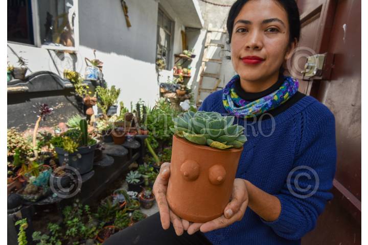 Irma Pichardo elabora macetas con figuras femeninas, algunas son de senos o de mastectomias que buscan crear conciencia acerca del cáncer de mama y aceptación del cuerpo humano.