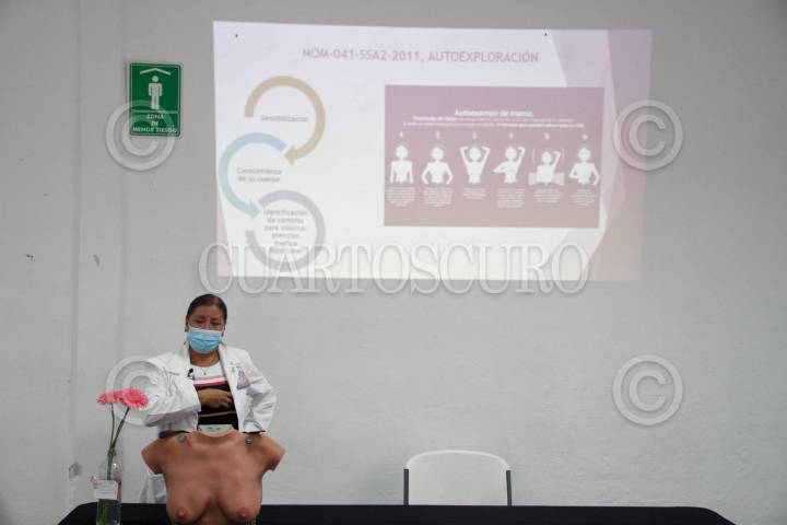 En el marco del Día Internacional de la Lucha contra el Cáncer de Mamá, la doctora Dolores Ponce de la Jurisdicción Sanitaria de la alcaldía Cuauhtémoc realizó una muestra de como se debe autoexplorar los senos las mujeres para detectar de manera temprana cualquier anomalía y atenderse de manera inmediata. Casa día mueren 12 mujeres en el país por cáncer de Mamá.