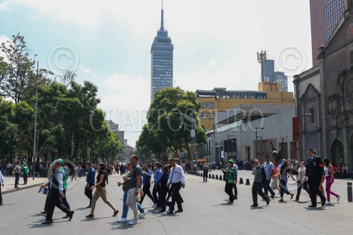 CIUDAD DE MÉXICO, 19SEPTIEMBRE2023.- Oficinistas de los tribunales y de la cancillería participaron en el Simulacro Nacional de protección civil con hipótesis de sismo, en punto de las once de la mañana sonó la alerta sísmica lo que dio pie a que las personas desalojaran los inmuebles y se colocarán en orden en la Alameda Central, no se reportaron novedades. FOTO: MOISÉS PABLO/CUARTOSCURO.COM