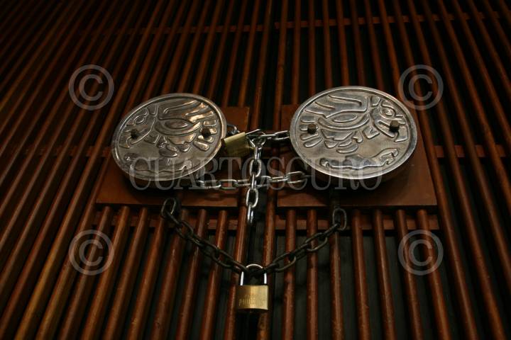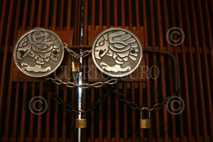MÉXICO D.F. 17ABRIL2008.-Los diputado Alberto Esteba y Pablo Arreola, por la madrugada de este jueves colocaron cadenas y candados a las puertas del salón de plenos en la Cámara de Diputados. FOTO: GUILLERMO PEREA /CUARTOSCURO.COM
