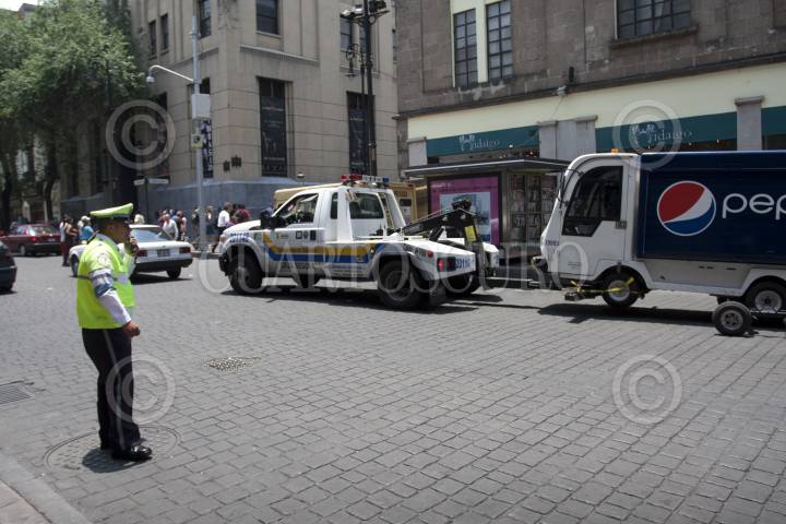 MÉXICO D.F., 25ABRIL2011.- La Secretaría de Seguridad Pública del Distrito Federal (SSPDF) inicio este lunes un operativo en el que participarán 50 grúas, 30 vehículos que portan los inmovilizadores conocidos como “arañas” y cien policías esto con el fin de que cualquier vehículo que se encuentre estacionado en las calles del Centro Histórico será multado y remitido al corralón sin tolerancia. FOTO: GUILLERMO PEREA/CUARTOSCURO.COM