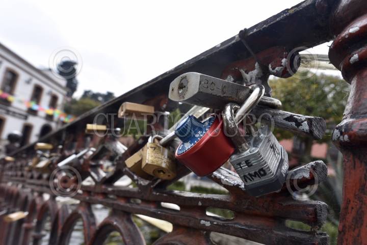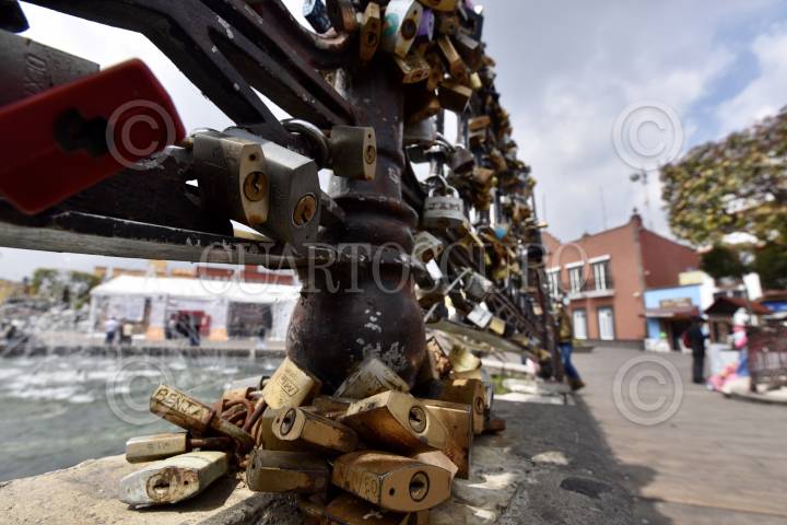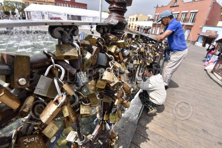 METEPEC, ESTADO DE MÉXICO, 14FEBRERO2019.- En el Jardín Benito Juárez en Metepec existe un Puente muy visitado por enamorados, en donde colocan candados para sellar su compromiso de amor, graban sus letras en los candados y los dejan en el puente, aventando la llave a la fuente. FOTO: ARTEMIO GUERRA BAZ /CUARTOSCURO.COM