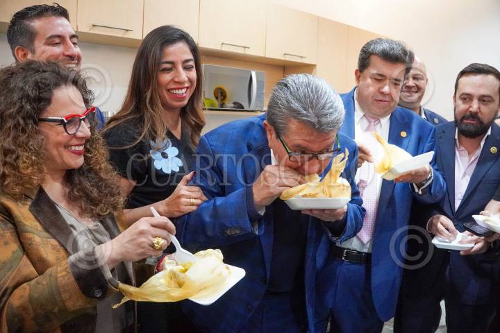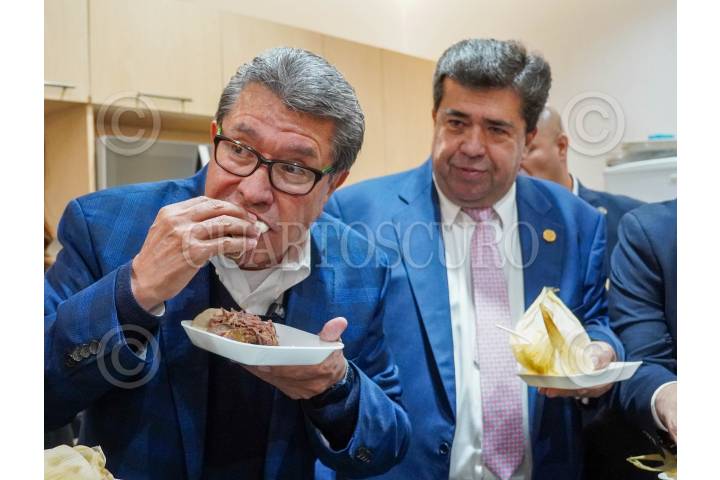 CIUDAD DE MÉXICO, 01FEBRERO2025.- El coordinador morenista en Diputados, Ricardo Monreal, y el diputado Pedro Haces Barba compartieron tamales, correspondientes al tradicional día de la Candelaria, con representantes de los medios de comunicación en el marco de la instalación del nuevo periodo de sesiones en la Cámara Baja. FOTO: ELIZABETH RUIZ/CUARTOSCURO.COM