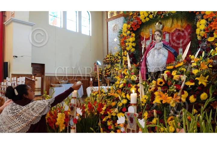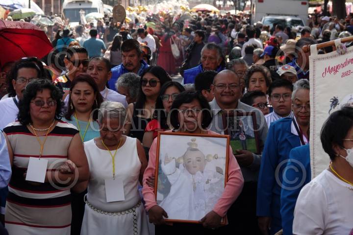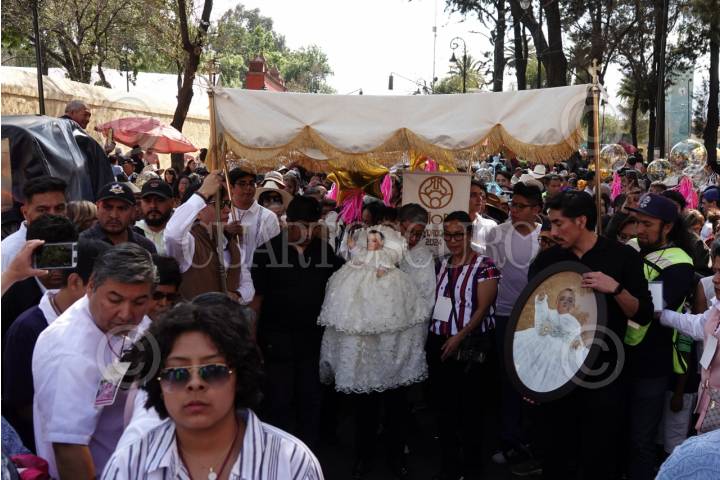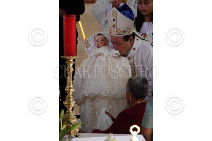 CIUDAD DE MÉXICO, 02FEBRERO2024.- Fieles de Xochimilco acudieron a la Catedral de Xochimilco (San Bernardino de Siena) para presenciar el cambio de mayordomía del Niñopa. La familia saliente Méndez Flores hizo entrega a la familia Trigueros Olivares, quienes llevan esperando 39 años para recibir al santo. Esta tradición cuenta con más de 400 años de antigüedad. FOTO: GALO CAÑAS/CUARTOSCURO.COM