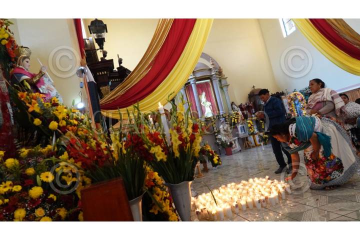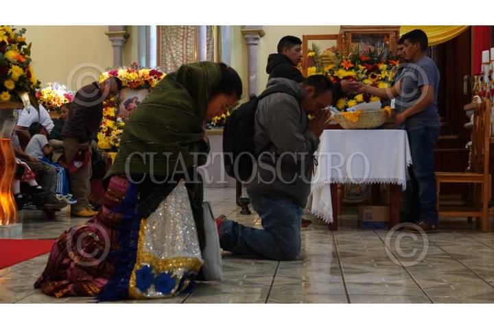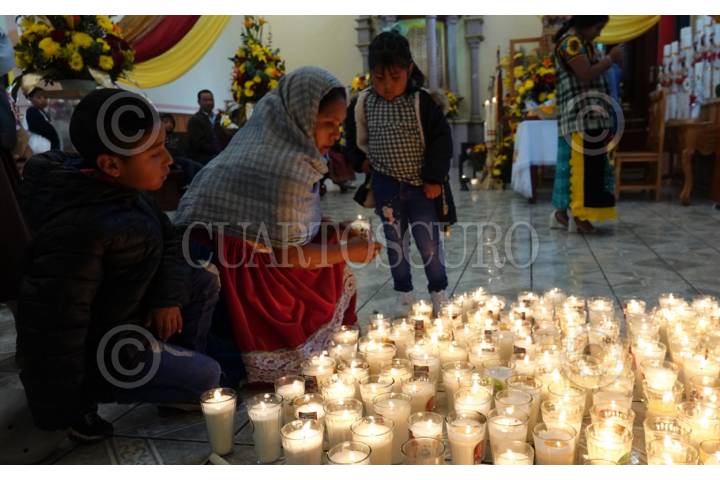 OCUMICHO, MICHOACÁN, 02FEBRERO2024.- En el marco del Día de la Candelaria, fieles creyentes purépechas acudieron a la Parroquia de San Pedro Ocumicho a pedir una oración mediante una veladora a la Virgen de la Candelaria. FOTO: GRACIELA LÓPEZ /CUARTOSCURO.COM