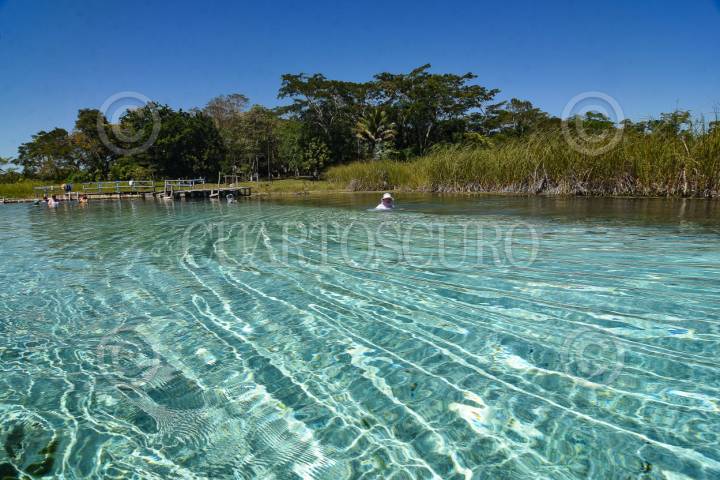 CANDELARIA, CAMPECHE 7 DE MARZO 2024.- Turistas nacionales y extranjeros en su visita a los manantiales Pedro Baranda, ubicado en el municipio de Candelaria en Campeche. este sitio se extiende por tres kilómetros, es famoso por sus aguas cristalinas y de los lirios que brotan desde sus profundidades que en algunos puntos miden 12 metros.