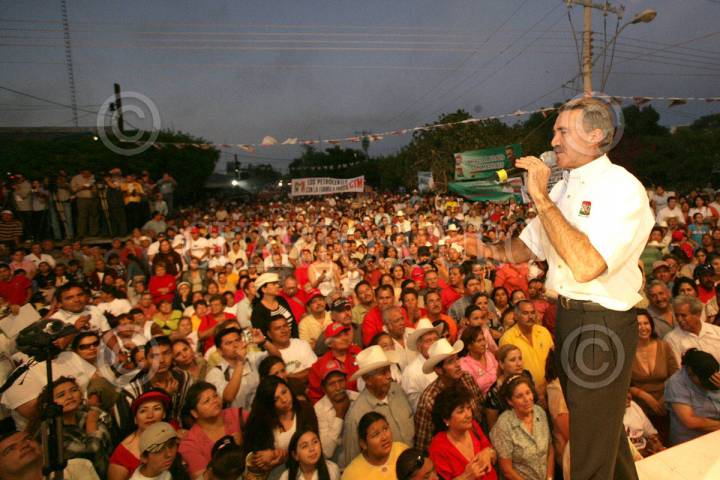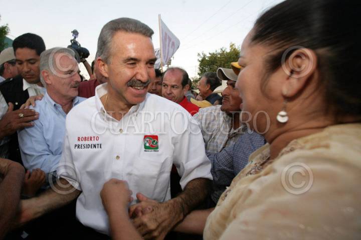 LOS MOCHIS, SINALOA 07ABRIL2006.- Roberto Madrazo Pintado,Candiato Presidencial de la alianza por Mèxico, saluda a los simpatizantes durante su gira por esa entidad. FOTO: PRI/CUARTOSCURO.COM