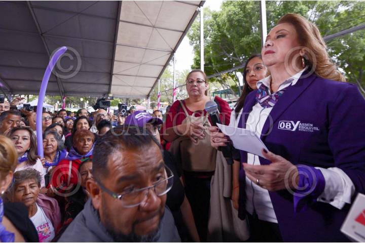 CIUDAD DE MÉXICO, 28MAYO2025.- Yazmín Esquivel, candidata a ministra de la Suprema Corte de Justicia de la Nación (SCJN), realizó su cierre de campaña junto a decenas de simpatizantes, en la Macroplaza de la alcaldía Iztapalapa. FOTO: CUARTOSCURO.COM