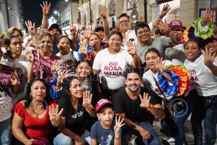 VERACRUZ, VERACRUZ, 02JUNIO2025.- Rosa María Hernández Espejo, candidata a la alcaldía de Veracruz por Morena-PVEM, festejo con simpatizantes en el zócalo de Veracruz su virtual triunfo, ya que señaló que tiene una delantera del 52.46%, sobre su contrincante Indira Rosales de Acción Nacional que alcanzó el 26.36? los votos, de acuerdo al PREP de Veracruz. FOTO: VICTORIA RAZO/CUARTOSCURO.COM