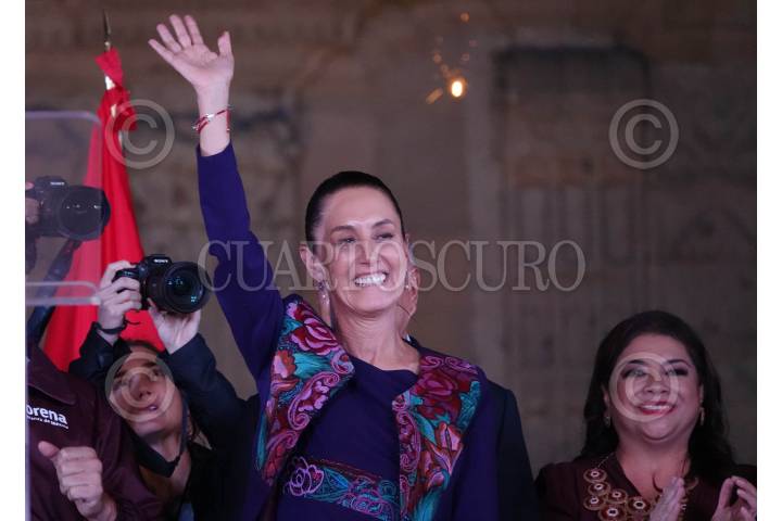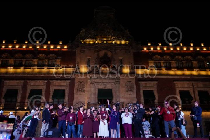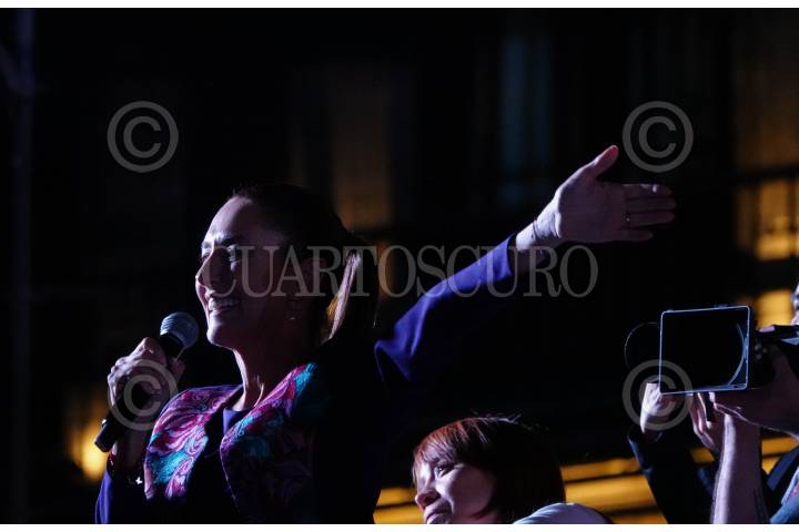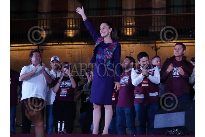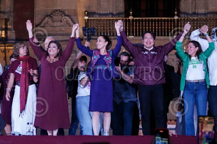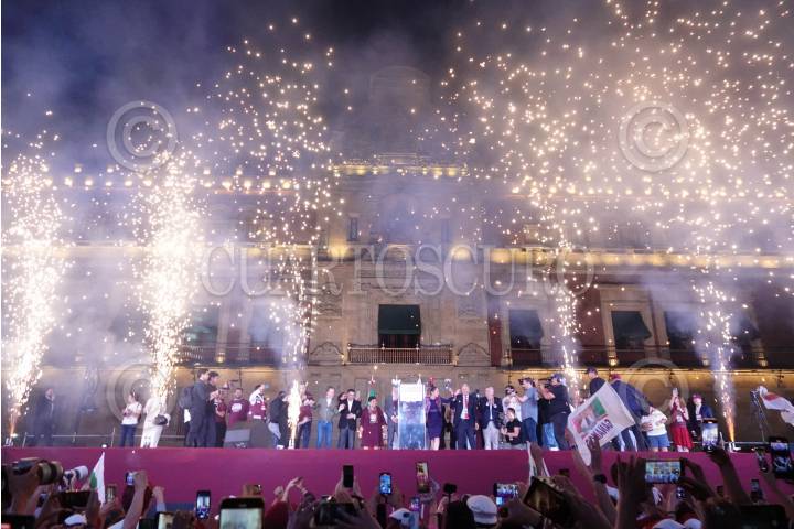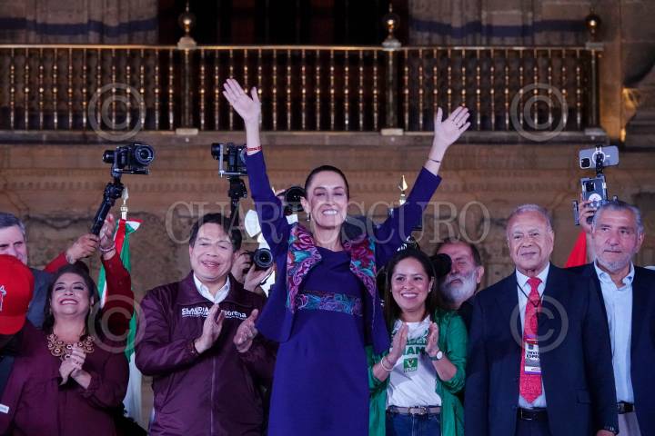 CIUDAD DE MÉXICO, 03JUNIO2024.- Claudia Sheinbaum, virtual ganadora de las elecciones presidenciales, acudió al Zócalo capitalino para celebrar el triunfo con simpatizantes de Movimiento de Regeneración Nacional (MORENA). Según cifras del PREP del Instituto Nacional Electoral, Sheinbaum Pardo obtuvo el 57? los votos. FOTO: GALO CAÑAS/CUARTOSCURO.COM