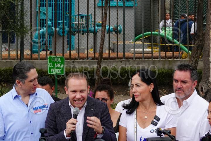 CIUDAD DE MÉXICO, 11ABRIL2024.- Santiago Taboada, candidato a la jefatura de gobierno por la coalición "Va por la CDMX", acompañado de Lía Limón, candidata a la alcaldía de Álvaro Obregón, encabezaron una conferencia a medios desde el Pozo Alfonso XIII para exigir una pronta solución al problema del agua supuestamente contaminada en la alcaldía Benito Juárez. FOTOS: ROGELIO MORALES /CUARTOSCURO.COM