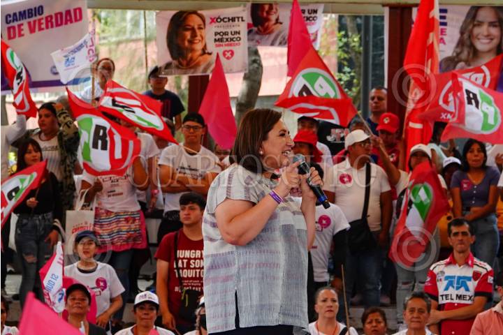 CIUDAD DE MÉXICO, 03MAYO2024.- Xóchitl Gálvez, candidata a la Presidencia de la República por la coalición Fuerza y Corazón por México, durante su reunión con vecinos de Tlatelolco. FOTOS: ROGELIO MORALES /CUARTOSCURO.COM