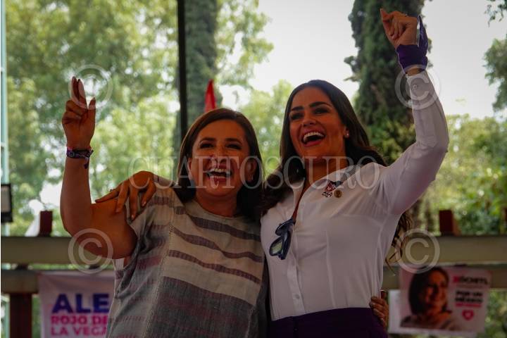CIUDAD DE MÉXICO, 03MAYO2024.- Xóchitl Gálvez, candidata a la Presidencia de la República por la coalición Fuerza y Corazón por México, Alessandra Rojo de la Vega, candidata por la alcaldía Cuauhtémoc, durante su reunión con vecinos de Tlatelolco. FOTOS: ROGELIO MORALES /CUARTOSCURO.COM