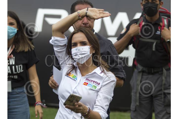 Simpatizantes de la candidata Clara Luz Flores y de MORENA, acudieron al estadio universitario para el cierre de campaña.