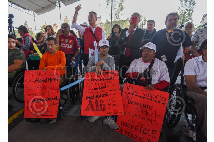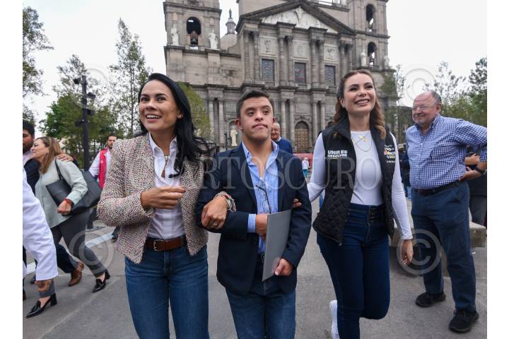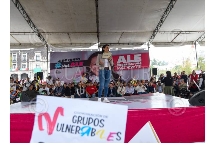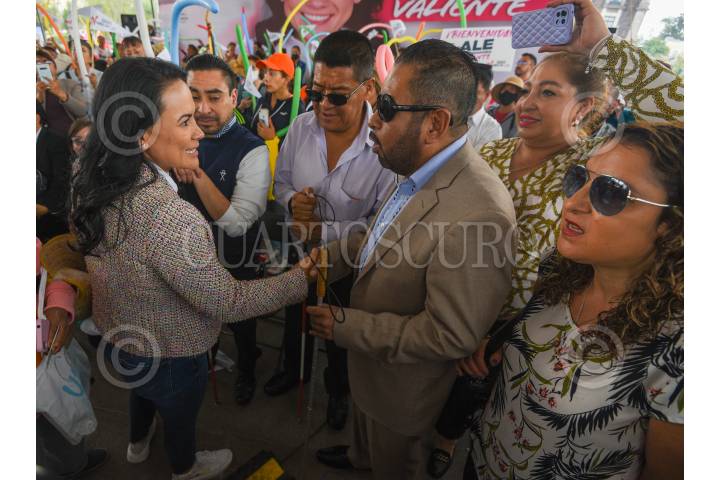 Alejandra del Moral candidata a la gubernatura del Estado de México por la coalición “Va por el Estado de México” sostuvo una encuentro con integrantes de grupos vulnerables en la Plaza de los Mártires en Toluca.