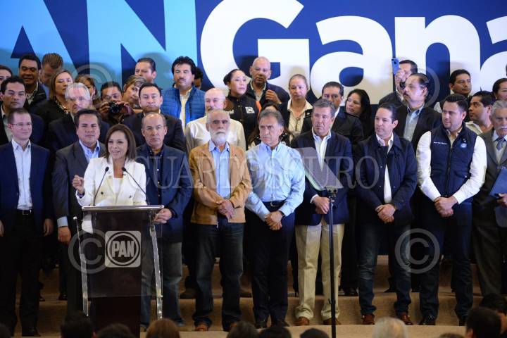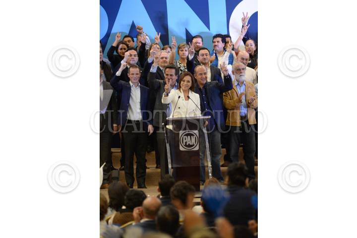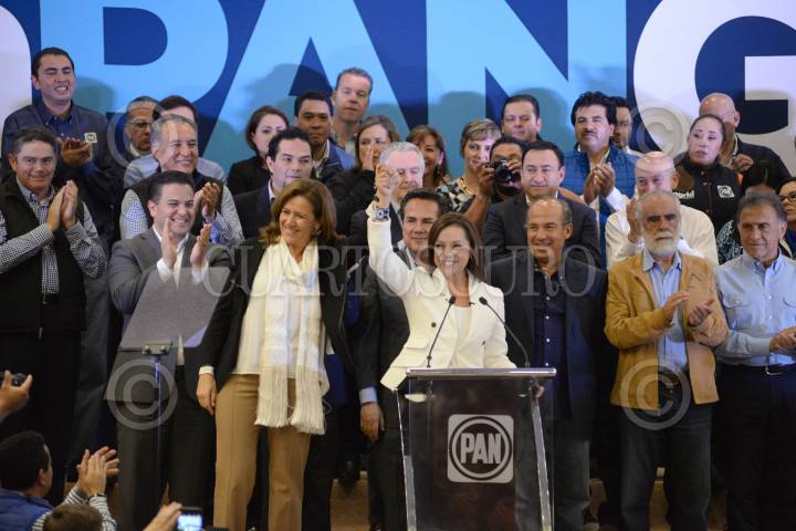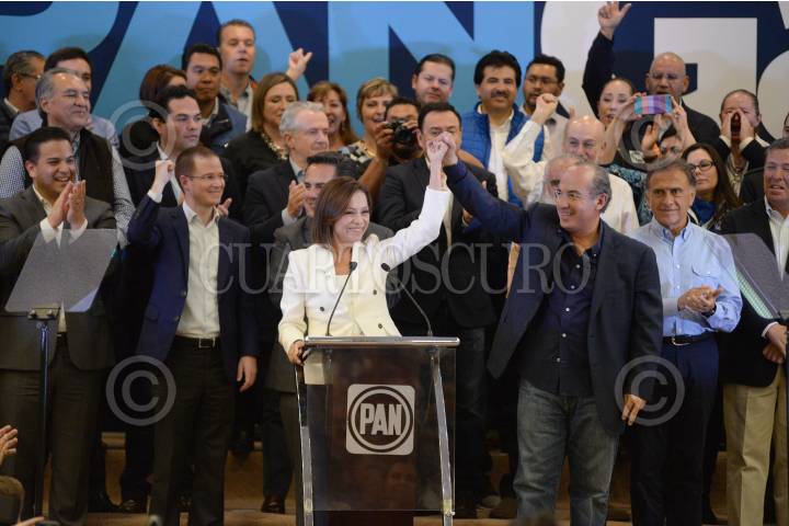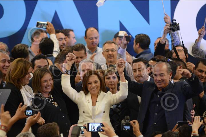 TOLUCA, ESTADO DE MÉXICO, 05MARZO2017.- Josefina Vazquez Mota tomó protesta como candidata del Partido de Acción Nacional (PAN), para la gubernatura del Estado de México. La acompañaron sus correligionarios Ricardo Anaya, presidente del PAN; Felipe Calderón Hinojosa, ex Presidente de México, Margarita Zavala, esposa de Calderón y aspirante a la Presidencia de la República, Diego Fernández de Ceballos, y Miguel Ángel Yunes, gobernador de Veracruz. FOTO: ARTEMIO GUERRA BAZ /CUARTOSCURO.COM
