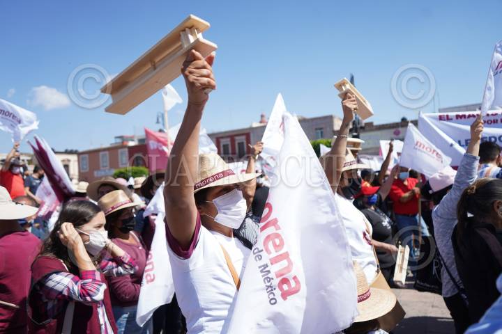 Más de tres mil personas se dan cita en este momento en la Plaza Valladolid de la ciudad de Morelia para esperar a Alfredo Ramírez Bedolla, candidato a la gubernatura de Michoacán. Personas provenientes de todo el Estado, arribaron desde temprana hora