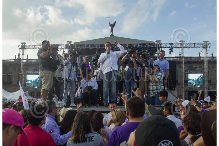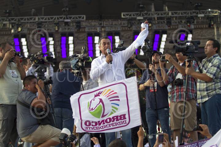 MONTERREY, NUEVO LEÓN, 24JUNIO2018.- Jaime Rodríguez Calderón "El Bronco" realizó su cierre de campaña en la Macroplaza en Monterrey ante miles de simpatizantes de diferentes municipios de la ciudad que apoyan a candidatos independientes a alcaldías, diputaciones, entre otros cargos. FOTO: GABRIELA PÉREZ MONTIEL /CUARTOSCURO.COM