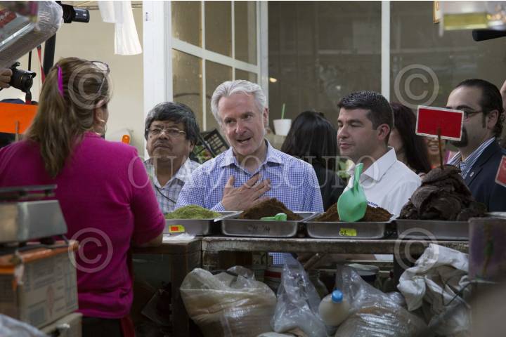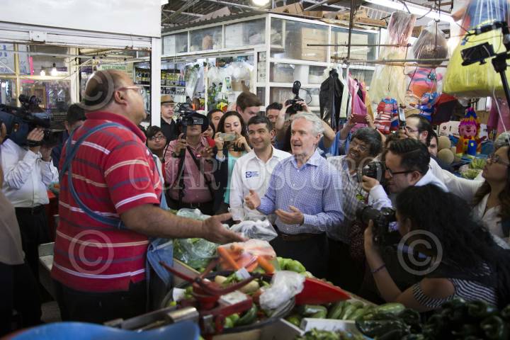 CIUDAD DE MÉXICO, 19MAYO2016.- Una hora después de la convocatoria, Santiago Creel Miranda Candidato del Partido Acción Nacional (PAN) a la Asamblea Constituyente, encabezó un recorrido por el Mercado Becerra en la colonia Tacubaya, donde dialogó con los comerciantes y personas de la zona. FOTO: TERCERO DÍAZ /CUARTOSCURO.COM