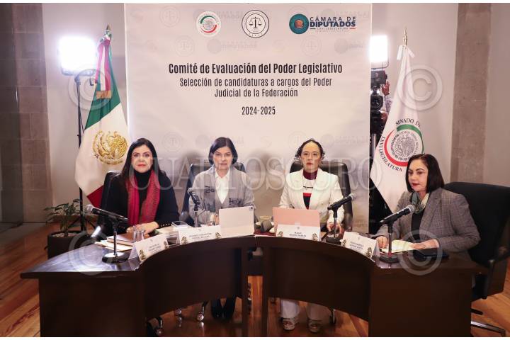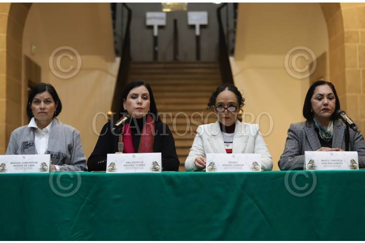 CIUDAD DE MÉXICO, 15ENERO2025.- El Comité de Evaluación del Poder Judicial ,integrado por Ana Patricia Briseño Torres, Maday Merino Damián, Maribel Concepción Méndez de Lara y María Gabriela Sánchez García, ofrecieron una conferencia de prensa donde comunicaron la forma de evaluar a los aspirantes a los cargos vacantes en el PJ. FOTO: DANIEL AUGUSTO/ CUARTOSCURO.COM