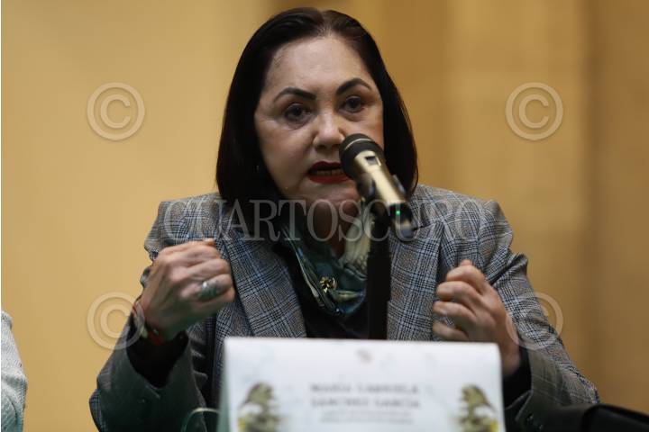 CIUDAD DE MÉXICO, 15ENERO2025.- María Gabriela Sánchez García, integrante del Comité de Evaluación, participa en la conferencia de prensa. FOTO: DANIEL AUGUSTO/ CUARTOSCURO.COM