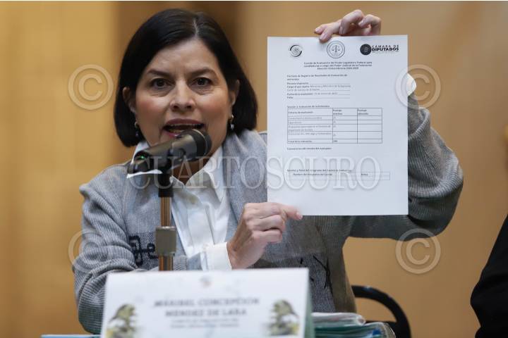 CIUDAD DE MÉXICO, 15ENERO2025.- Maribel Concepción Méndez de Lara, integrante del Comité de Evaluación, muestra la cédula que se utiliza durante la entrevista a los aspirantes a algún cargo vacante del Poder Judicial. FOTO: DANIEL AUGUSTO/ CUARTOSCURO.COM
