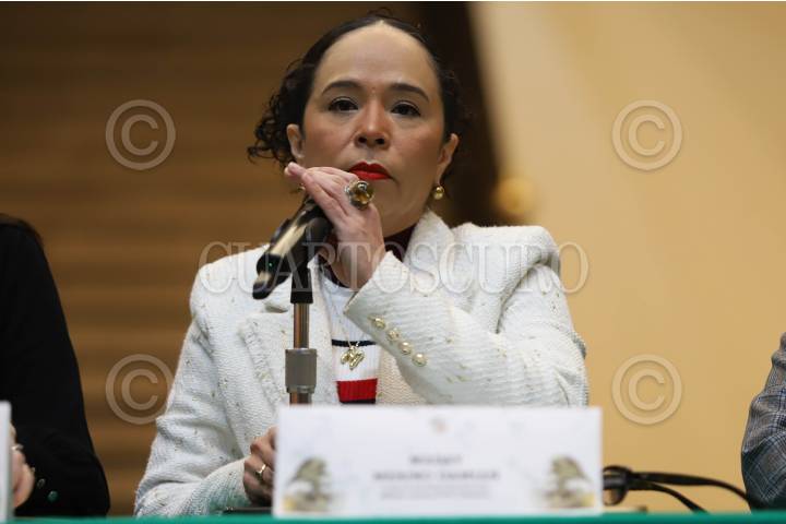 CIUDAD DE MÉXICO, 15ENERO2025.- Maday Merino Damián, integrante del Comité de Evaluación, durante la conferencia de prensa. FOTO: DANIEL AUGUSTO/ CUARTOSCURO.COM