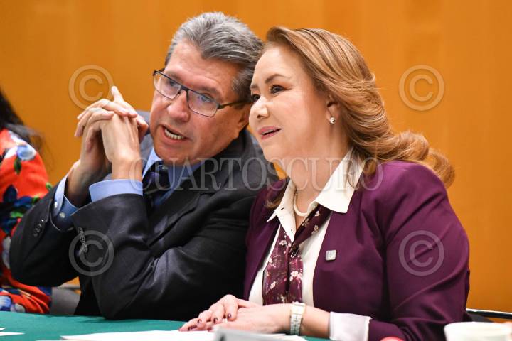 CIUDAD DE MÉXICO, 25FEBRERO2025.- Yasmín Esquivel, ministra de la Suprema Corte de Justicia (SCJN) y actual candidata para repetir dicho cargo, durante su reunión en la plenaria del grupo parlamentario de Morena realizada en el Auditorio Aurora Jiménez de la Cámara de Diputados. La acompaña Ricardo Monreal, diputado y coordinador del grupo parlamentario de Morena en la Cámara de Diputados. FOTO: MARIO JASSO/CUARTOSCURO.COM