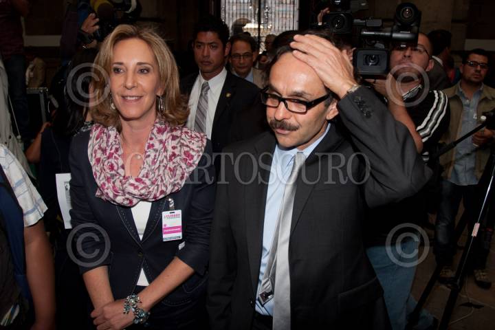 MÉXICO, D.F. 22MAYO2012.- María Elena Morera, presidenta de Causa Común, acompaña a Gabriel Quadri De La Torre, Candidato de Nueva Alianza, en la Primera Cumbre Ciudadana para la Construcción de un México Pacífico y Justo. Ahí diversas organizaciones ciudadanas presentaron a los cuatro candidatos presidenciales sus propuestas en materia de Seguridad y Derechos Humanos. FOTO: JUAN PABLO ZAMORA /CUARTOSCURO.COM