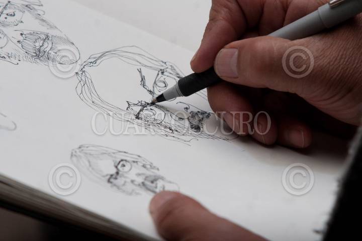 MÉXICO, D.F. 22MAYO2012.- Una persona hace un boceto a pluma durante la ponencia de Gabriel Quadri De La Torre, candidato de Nueva Alianza, en la Primera Cumbre Ciudadana para la Construcción de un México Pacífico y Justo, donde diversas organizaciones ciudadanas presentaron a los cuatro candidatos presidenciales sus propuestas en materia de Seguridad y Derechos Humanos. FOTO: JUAN PABLO ZAMORA /CUARTOSCURO.COM