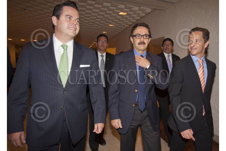 MÉXICO, D.F., 23MAYO2012.- Gabriel Quadri De la Torre, candidato de Nueva Alianza a la Presidencia de la República, asistió a una reunión con el Consejo de la Comunicación, fué recibido por Salvador Villalobos, presidente ejecutivo del Consejo de la Comunicación y Pablo González Guajardo, Presidente de ese organismo. FOTO: JUAN PABLO ZAMORA /CUARTOSCURO.COM