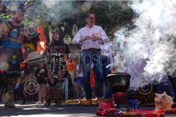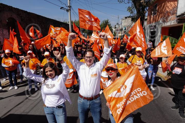 CIUDAD DE MÉXICO, 02MARZO2024.- Salomón Chertorivski, candidato a la jefatura de Gobierno, Sandra Cuevas y Alejandra Bárrales, candidatas al Senado de la República, realizaron un recorrido por San Gregorio Xochimilco, como parte del arranque de su campaña en diversos puestos políticos. FOTOS: ROGELIO MORALES /CUARTOSCURO.COM