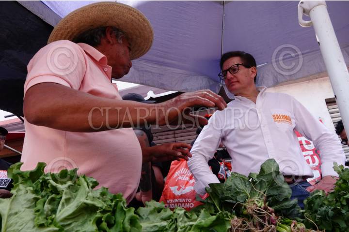 CIUDAD DE MÉXICO, 02MARZO2024.- Salomón Chertorivski, candidato a la jefatura de Gobierno, Sandra Cuevas y Alejandra Bárrales, candidatas al Senado de la República, realizaron un recorrido por el Mercado de San Gregorio Xochimilco, como parte del arranque de su campaña en diversos puestos políticos. FOTOS: ROGELIO MORALES /CUARTOSCURO.COM