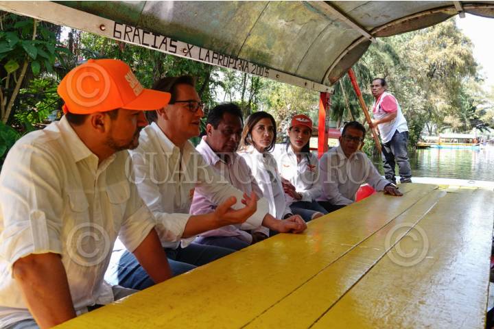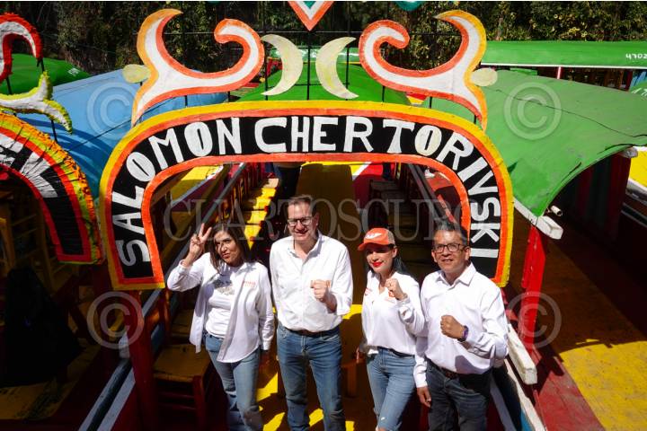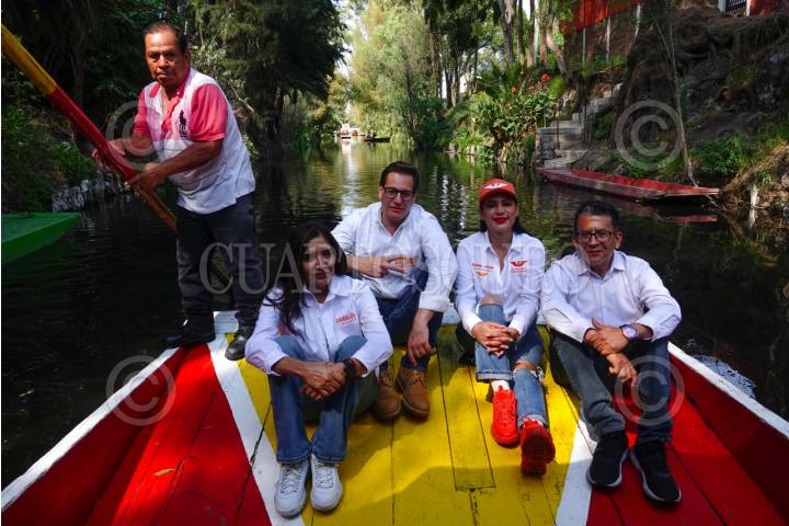 CIUDAD DE MÉXICO, 02MARZO2024.- Salomón Chertorivski, candidato a la jefatura de Gobierno, Sandra Cuevas y Alejandra Bárrales, candidatas al Senado de la República, realizaron un recorrido por el Canal de Nativitas en Xochimilco, como parte del arranque de su campaña en diversos puestos políticos. FOTOS: ROGELIO MORALES /CUARTOSCURO.COM
