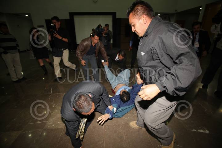 MÉXICO, D.F., 30MARZO2012.- José Luis González Meza, candidato independiente a la presidencia de la República, fue echado de la sesión del IFE, luego de lanzar un zapato al pleno, esto tras finalizar el punto referente a las candidaturas independientes, las cules fueron rechazadas por el consejo. FOTO: JUAN PABLO ZAMORA /CUARTOSCURO.COM