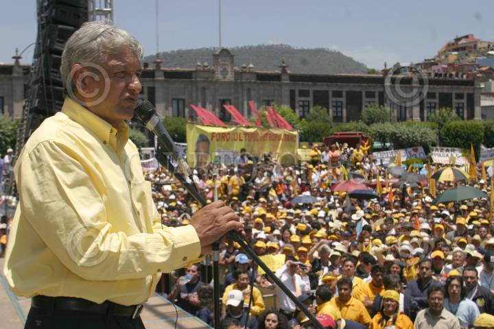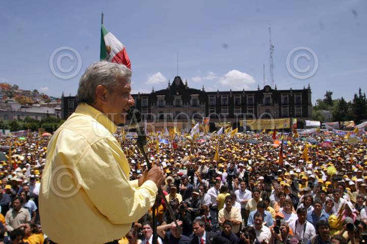 TOLUCA, ESTADO DE MEXICO26JUNIO2006.- Andrés Manuel López Obrador, candidato de la colación Por el Bien de Todos durante su cierre de campaña en dicha entidad. FOTO: Nelly Salas/CUARTOSCURO.COM