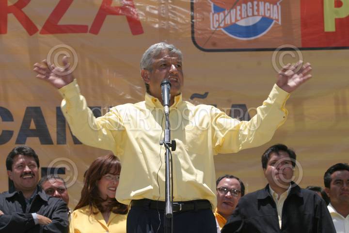 TOLUCA, ESTADO DE MEXICO26JUNIO2006.- Andrés Manuel López Obrador, candidato de la colación Por el Bien de Todos al termino de su cierre de campaña en dicha entidad. FOTO: Nelly Salas/CUARTOSCURO.COM