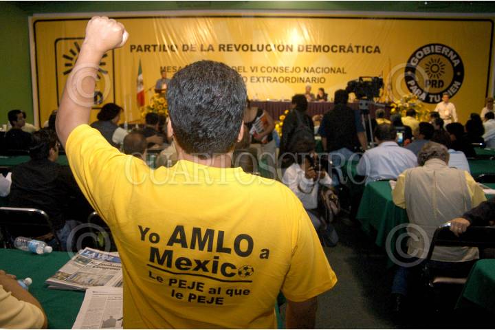 MEXICO D.F. 08JULIO 2006.- Apoyo al canditado por el Bien de Todos durante la asmblea informativa del VI consejo nacional del PRD. FOTO: Guillermo Perea/CUARTOSCURO.COM