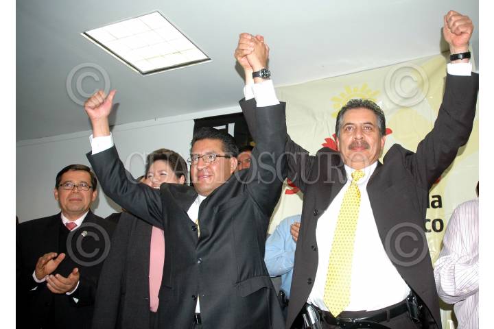MÉXICO D.F., 21ENERO2008.- Jesús Ortega y Horacio Duarte al termino del discurso ante cientos de simpatizantes despues de haber entregado el registro para canditado a la presidencia nacional del PRD. FOTO: RODOLFO ANGULO/CUARTOSCURO.COM