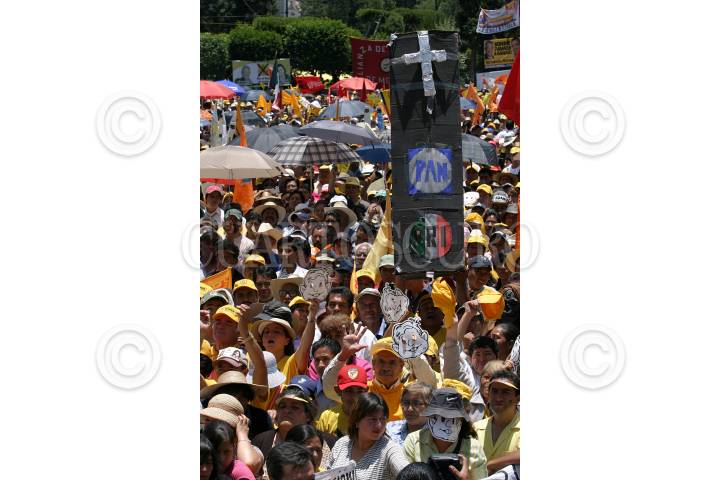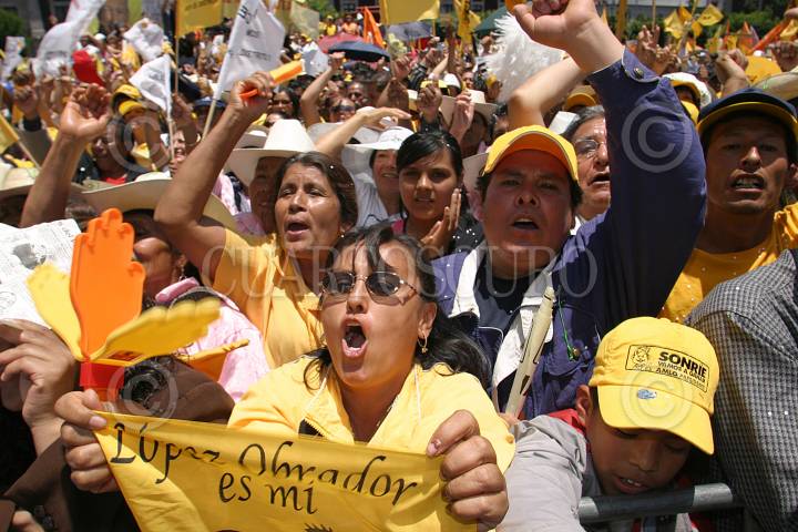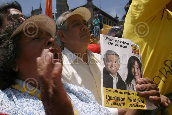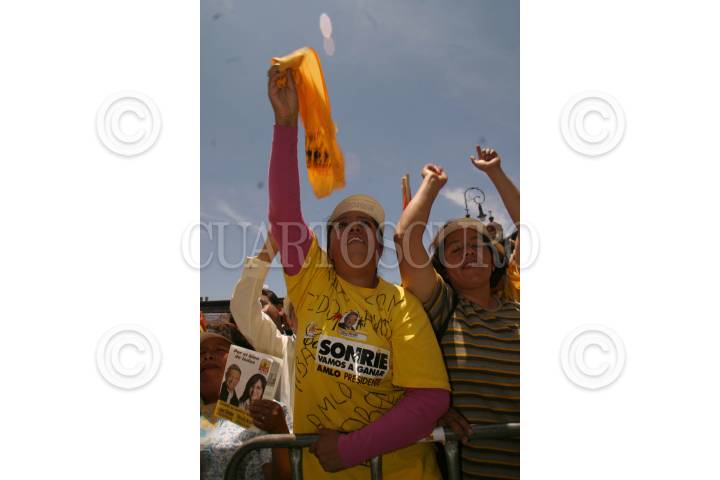 TOLUCA, ESTADO DE MEXICO26JUNIO2006.- Simpatizantes del candidato de la colación Por el Bien de Todos durante el cierre de campaña en dicha entidad. FOTO: Nelly Salas/CUARTOSCURO.COM