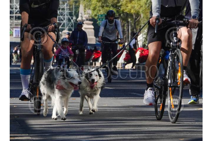 CIUDAD DE MÉXICO, 15DICIEMBRE2024.- Junto a sus dueños perros pasean durante el Paseo Dominical, en Avenida Paseo de la Reforma. FOTO: MAGDALENA MONTIEL/CUARTOSCURO.COM