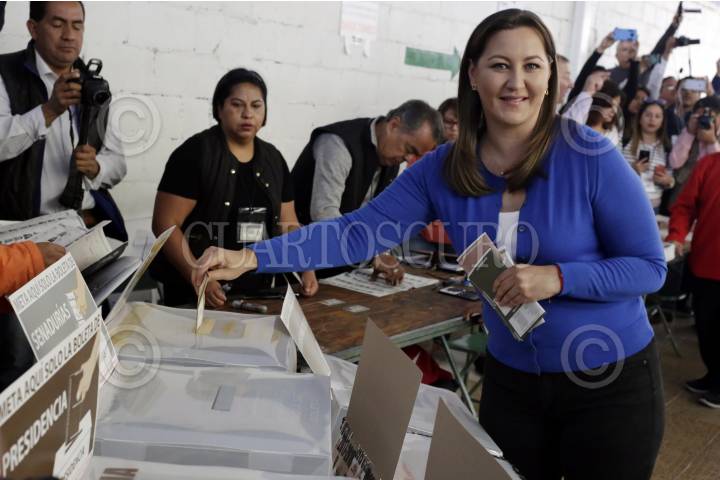 PUEBLA, PUEBLA 01JULIO2018.- Martha Érika Alonso, candidata a la gobernatura de Puebla por la coalición Por Puebla al Frente, emitió su voto en la capital poblana. FOTO: CUARTOSCURO.COM