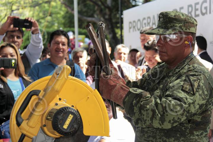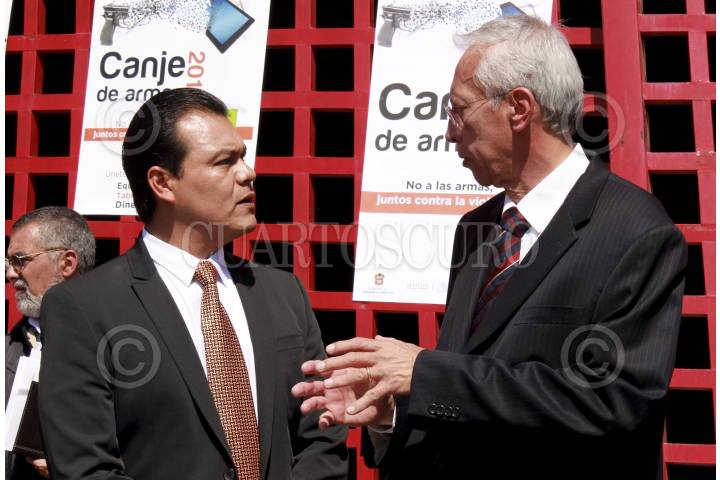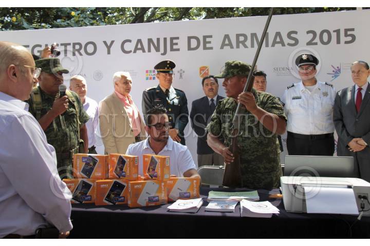 CUERNAVACA, MORELOS, 05NOVIEMBRE2015.- El secretario de gobierno Matías Quiroz y el presidente municipal de Cuernavaca, Jorge Morales Barud, así como autoridades federales y estatales llevaron a cabo la ceremonia de inauguración del Registro y canje de armas 2015 que se realizó en Plaza de Armas Emiliano Zapata Salazar. FOTO: PATRICIA MORALES /CUARTOSCURO.COM