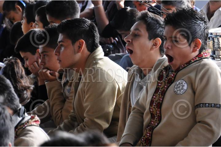 MÉXICO, D.F., 19ABRIL2010.- Alumnos de la escuela primaria Canadá, bostezan durante la ceremonia de "Inicio de la Prueba Enlace 2010 y entrega de Estímulos a la Calidad Docente", que se realizó esta mañana y a la cual asistieron el presidente de México, Felipe Calderón Hinojosa, la lideresa magisterial, Elba Esther Gordillo, y el secretario de Educación, Alonso Lujambio. FOTO: MISAEL VALTIERRA/CUARTOSCURO.COM