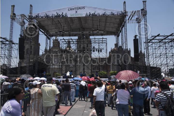 CIUDAD DE MÉXICO, 30ABRIL2017.- Decenas de capitalinos presenciaron el inicio del concierto Cantando x México en el Zócalo de la ciudad. FOTO: TERCERO DÍAZ /CUARTOSCURO.COM
