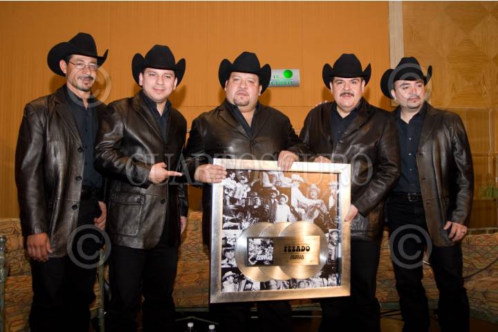 MÉXICO D.F., 26MAYO2010.- Los integrantes del grupo de música norteña Pesado, recibió triple Disco de Platino por las más de 180 mil copias colocadas en el mercado de su álbum "Desde la cantina". FOTO: GUILLERMO PEREA/CUARTOSCURO.COM