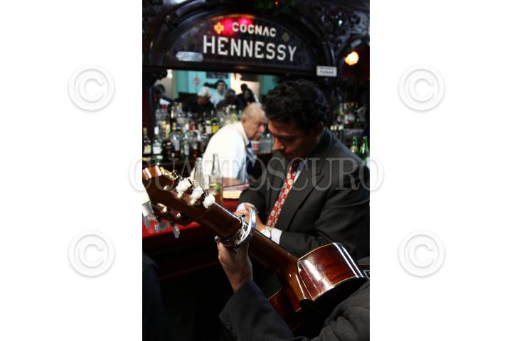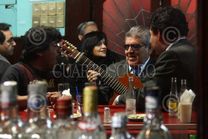 MEXICO, D.F., 07ENERO2011.- Un músico de talón toca una melodía a un visitante de la cantina del "Tío Pepe", situada estratégicamente en el Barrio Chino de Dolores desde 1874 y atendida personalmente por Don Aureliano Martínez. En la esquina de Independencia y Dolores, es un lugar legendario y de referencia obligada por el trabajo de ebanistería en su barra y contra-barra. Además de ser un idílico búnker, esta cantina es locación obligada de películas vaqueras mexicanas y comerciales futboleros. Fue visitada en el pasado tanto por miembros de la Banda del Automóvil Gris, como del poeta beat William Burroughs y de personajes tan afines como los Chamucos. Esta cantina forma parte del inicio de la nueva temporada del "Paseo de Cantinas en el Centro Histórico", recorrido nocturno realizado los días jueves en sitios emblemáticos a bordo de una réplica de un tranvía del siglo XIX que recorre algunos de los más importantes puntos del Centro Histórico de la Ciudad de México. Esto es organizado por la dirección de divulgación cultural de la Secretaría de Cultura del Distrito Federal. FOTO: MISAEL VALTIERRA/CUARTOSCURO.COM