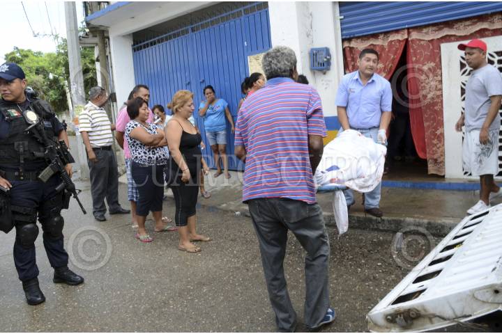 ACAPULCO, GUERRERO, 31JULIO2013.- Esta mañana, varios hombres armados llegaron al interior de la cantina “Restaurante Axel”, donde murio a balazos, Francisco Martínez Gómez de 35 años de edad, quien se encontraba lavando su negocio.Los hechos se desarrollaron en avenida las Parotas, frente al mercado de las Cruces y a unos metros del sitio de taxis, hechos que movilizaron a las autoridades policíacas de los tres niveles de gobierno así como a los militares. Las autoridades del Ministerio Público de la colonia Emiliano Zapata, a cargo del licenciado Mauricio Moreno Mejía, quien de inmediato flanqueó la entrada de la cantina y en seguida los peritos a cargo de Félix González, levantaron cuatro casquillos percutidos de calibre 45. FOTO BERNANDINO HERNÁNDEZ /CUARTOSCURO.COM